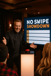 A bold, interactive dating-style game that gets singles laughing, talking, and connecting — no apps, no swiping, just real fun.
